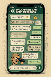 #WhatsAppChronicles #SocietyDrama #IndianHumour #DesiComedy #ApartmentLife #GroupChatGold #EverySocietyEver #DownpourCreations #MiddleClassMadness #MasaledarMonday #SatireWithSpice #RelatableAF #ThaliSeKabootarTak #ParkingLotMysteries #BinocularUncle #AirtelKoBhiTagKaro #SocietyManagerZindabaad #ScreenshotWars #SilentObserverNoted #AdminOnlyZone